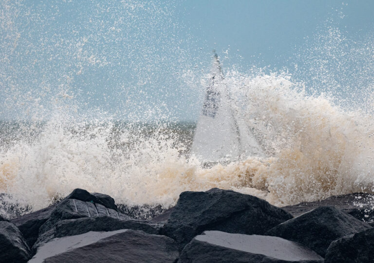 Some hardy dingy sailors take every opportunity to race their winter series, taking turns to do RO and give cover, organised by Graham. Last Sunday, a strong SE breeze with sizeable waves saw 10 boats competing with Phil and Catriona…